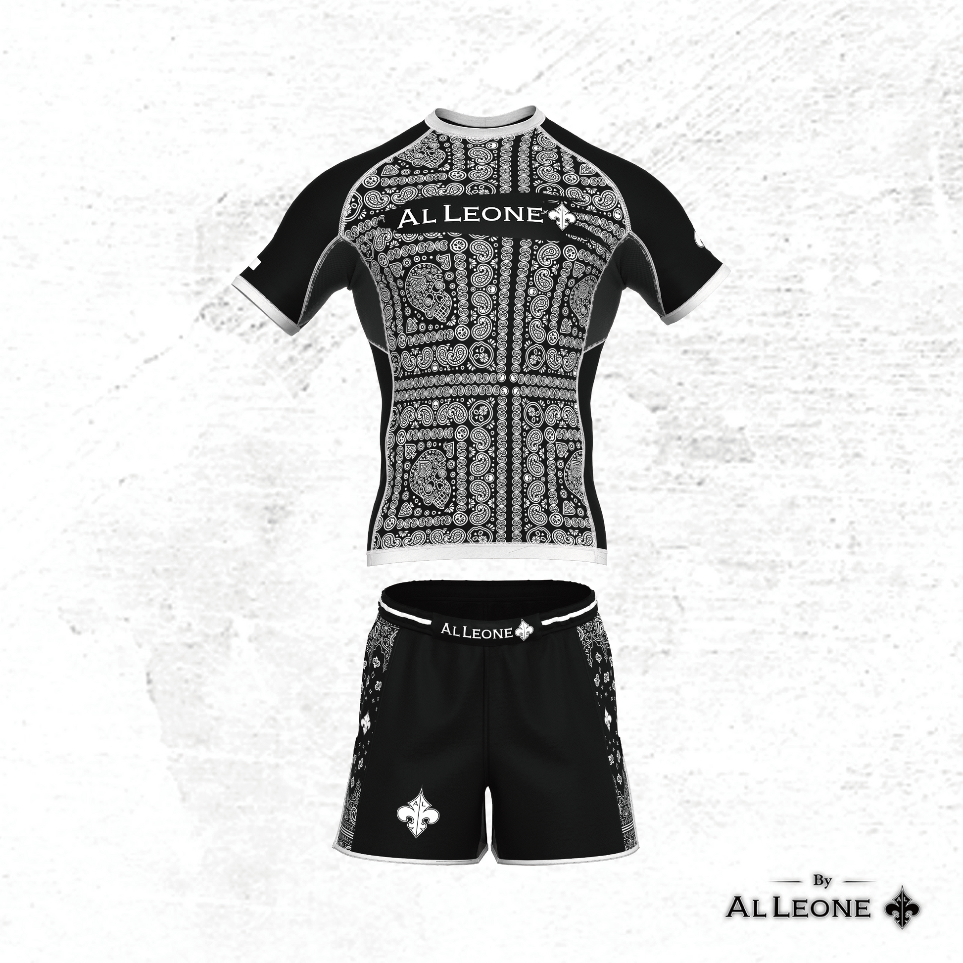 Classic black and white with refined paisley accents, symbolizing strength and