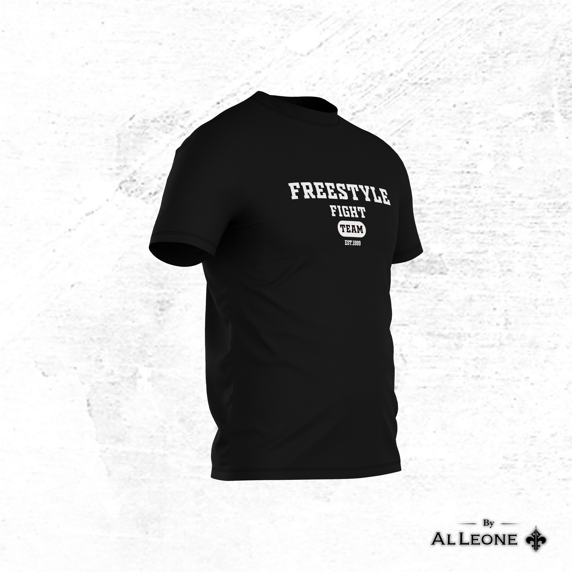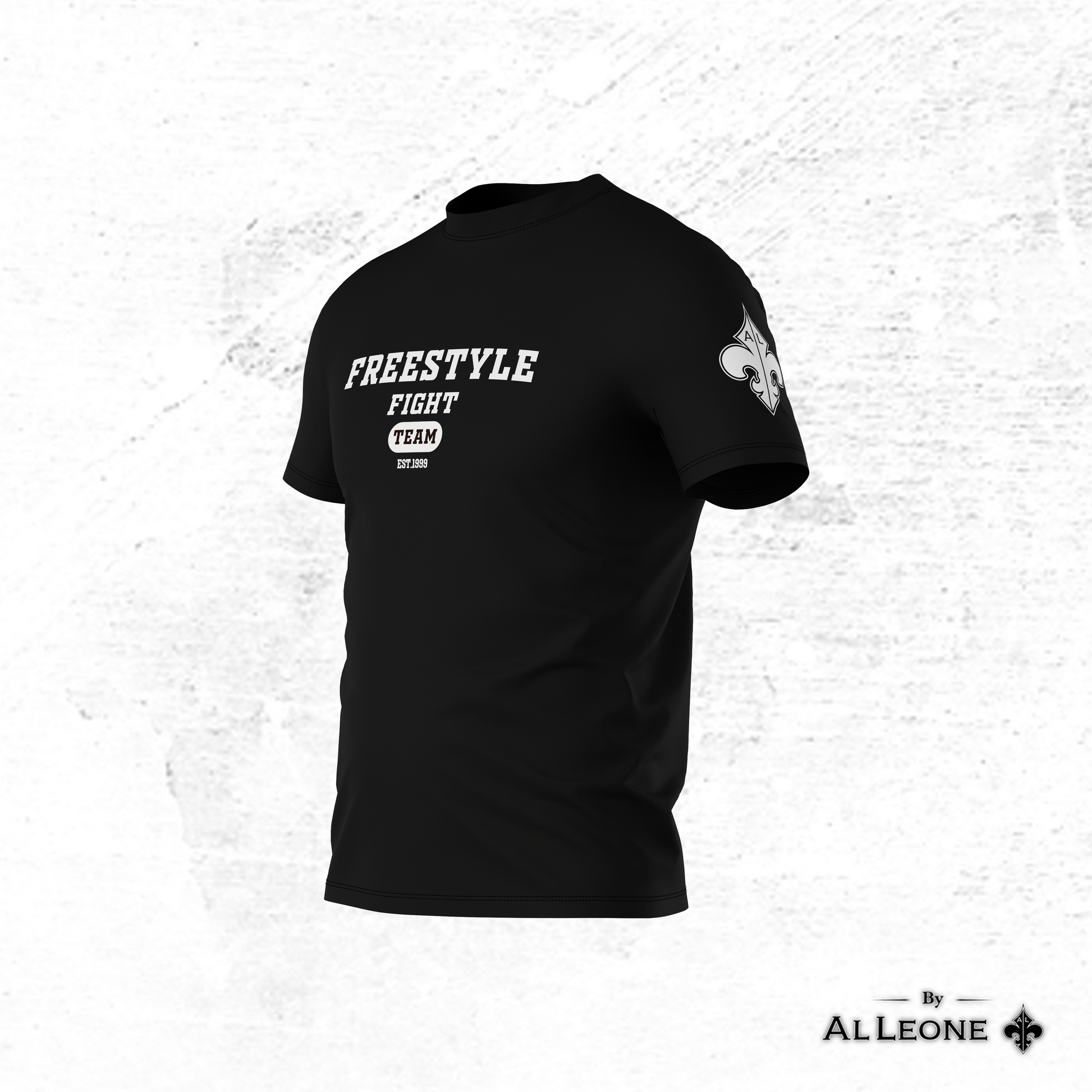 Freestyle MMA and AL LEONE have collaborated to create exclusive white and black t-shirts with their logos, featuring a regular cut for a comfortable fit. These shirts blend Freestyle MMA's dynamic spirit with AL LEONE's quality craftsmanship.